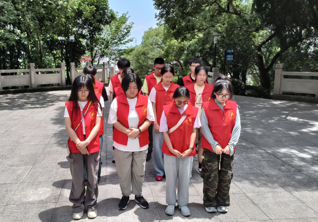 “我志愿加入反邪教宣传队伍,以科学为盾,以真理为剑,坚决抵制邪教歪理邪说……”在纪念碑前,实践队成员庄严宣誓,将反邪教承诺融入铿锵誓言。随后,同学们有序瞻仰烈士墓碑,细心擦拭碑刻,以实际行动表达对英烈的缅怀。