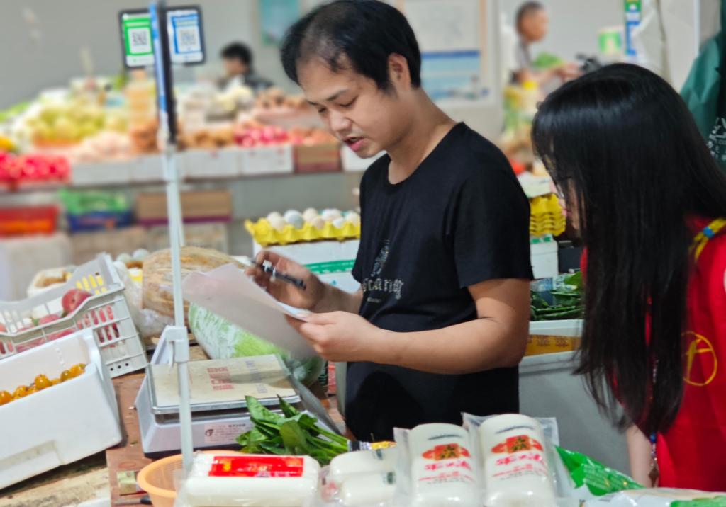 实践队成员在农贸市场内开展问卷调查