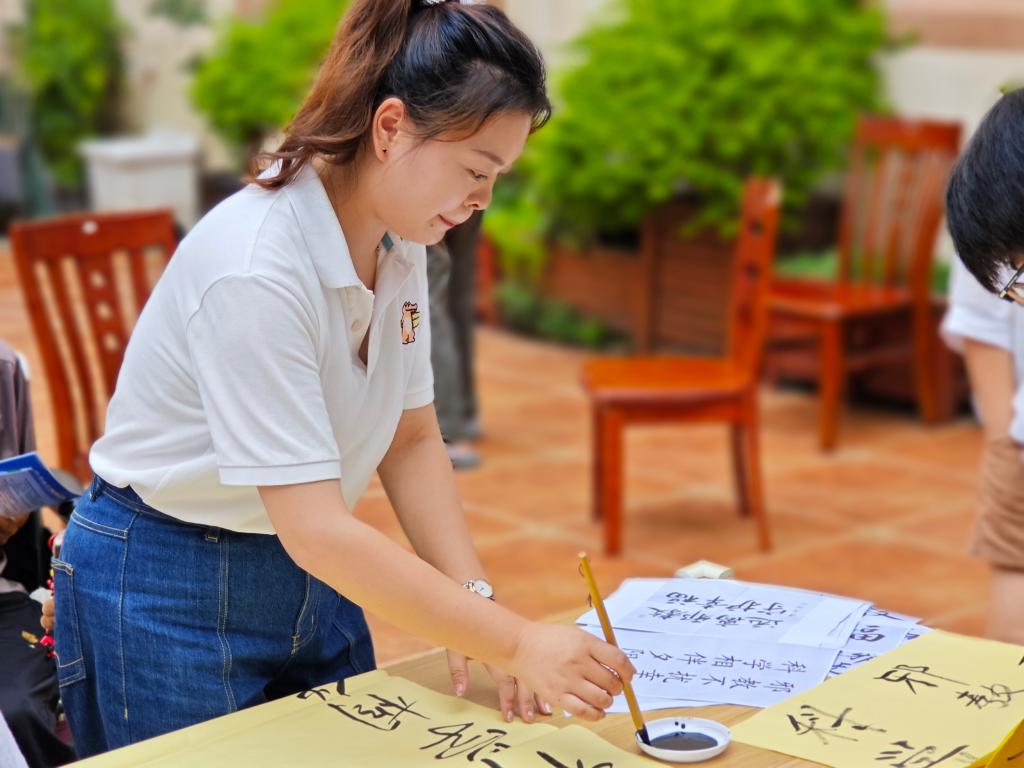 书法桌前更现动人场景。员工们挥毫写下“科学护航幸福”,养老院经理接过毛笔即兴添上“邪不侵正”,墨香氤氲中,爷爷奶奶们也前来加入,银发与青春笔迹在宣纸上交融成抵御邪教的铜墙铁壁。