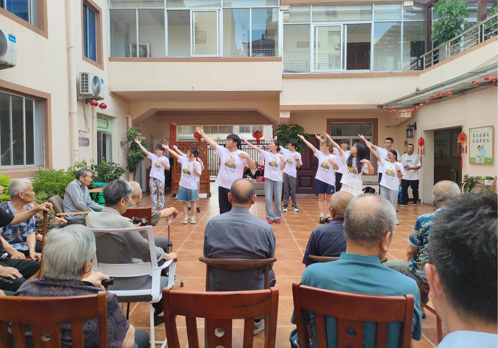 转过街角,好时光养老院传来轻快的节奏声。实践队员们编排的反邪教手势舞正在上演,指尖划出的弧线与 “崇尚科学”的口号同频共振,引得坐在轮椅上的奶奶们笑出满脸褶皱,不自觉地跟着节拍轻晃手臂。