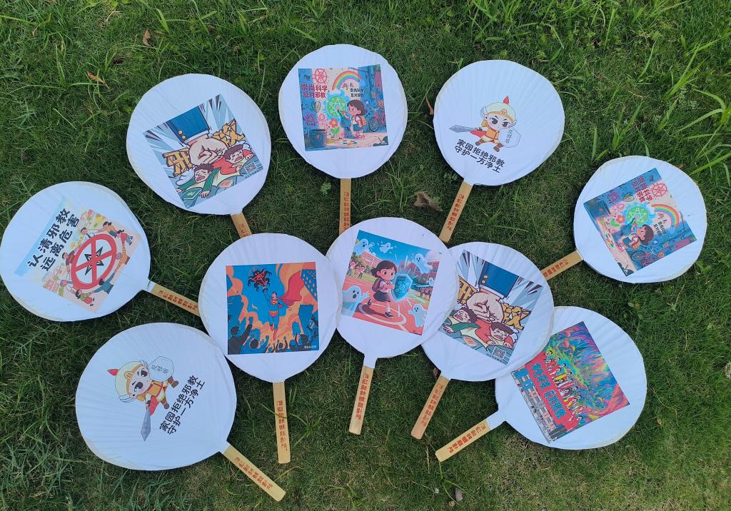 当历经波折的扇骨终于挺立,覆上反对邪教的卡通图案的刹那,小巷内响起低低的惊叹。浆糊在扇骨与纸面间流淌,如同古老智慧浸润年轻心灵。最终粘合的图案在扇面舒展,清风自掌心漾开时,实践队员们蓦然领悟:竹条百折不挠的秉性,恰似抵御邪教虚假力量的精神脊梁。这穿越时光的坚韧,比任何宣言都更铿锵有力。