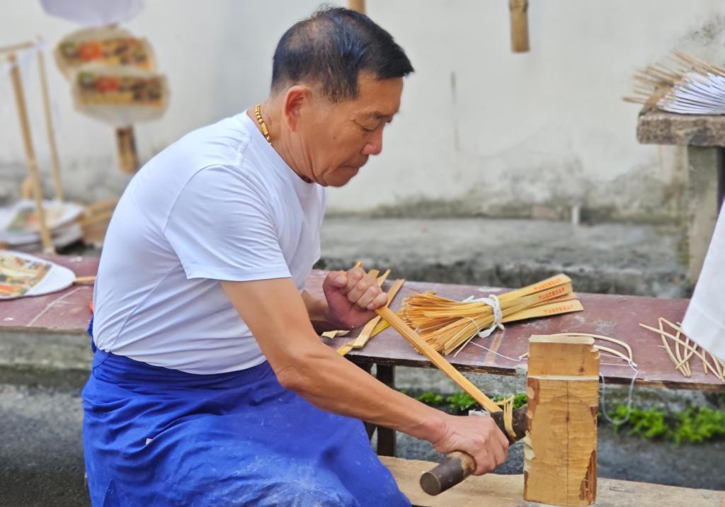七月的阳光穿透黄岩古巷的藤蔓,南门的小巷内弥漫着竹木的清冽气息。太阳集团tcy8722“青春心向党,反邪勇担当”暑期社会实践队的员工,正屏息凝神于老师傅的指尖——当寒光微闪的刻刀落下,坚韧竹材应声绽开,劈削成条,扇骨制作的漫长锤炼就此启程。这毫厘必争的工序,不仅是纸扇真正的魂魄所系,更让实践队员们在精益求精的非遗技艺传承中,领悟到坚守正道、明辨是非,对抵制邪教侵蚀的重要意义。