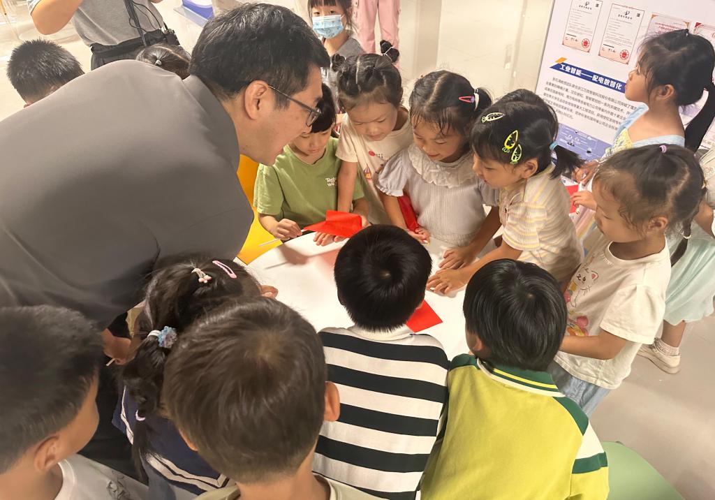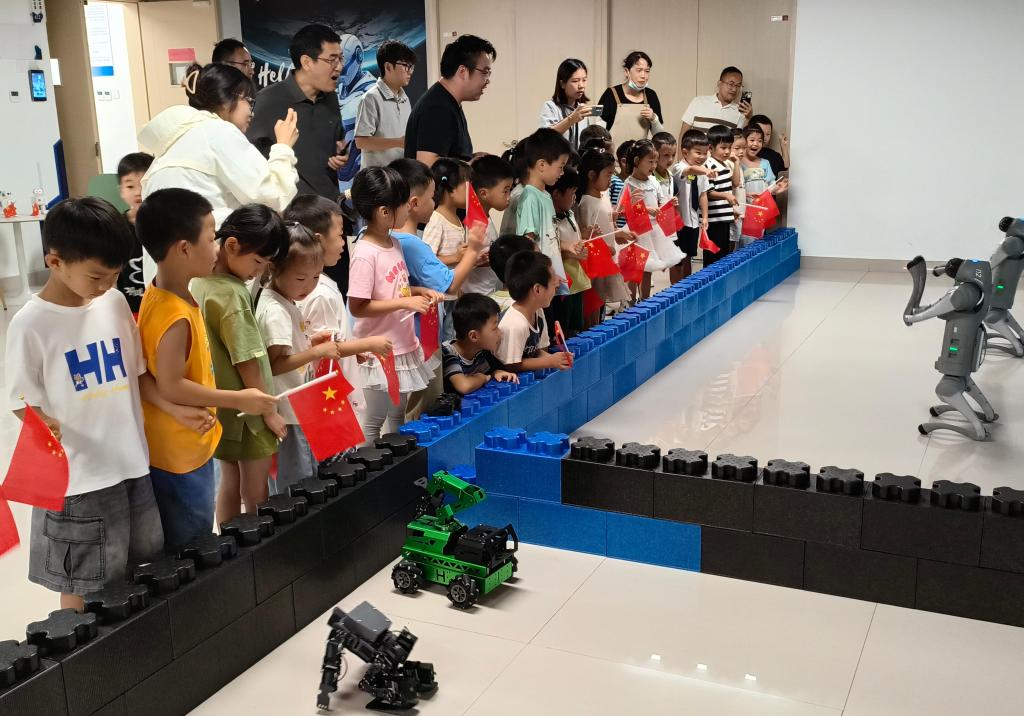 活动伊始,公司的大哥哥大姐姐们为每位小朋友送上了一面崭新的五星红旗。小朋友们兴奋地挥舞着,那一张张透着天真的笑脸,与国旗的鲜艳相互映衬,浓浓的爱国情怀与对未知科技的向往在此刻交织,为本次参观活动拉开了温暖的序幕。