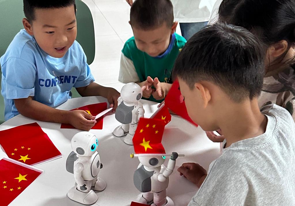 童心与AI心相连,好奇与创造力共舞。这次大手牵小手的奇妙之旅,实现了知识输出与实践能力的双向提升,同时深化了同学们的社会责任感与同理心,也在心湖幼儿园孩子们的成长记忆中画下了浓墨重彩的一笔,为他们面向未来的梦想,插上了科技的翅膀。在这个举国同庆的日子里,孩子们纯真的笑脸与先进的科技交相辉映,共同构成了一幅献给祖国母亲最动人的生日画卷。