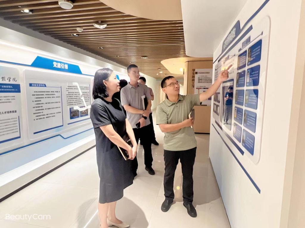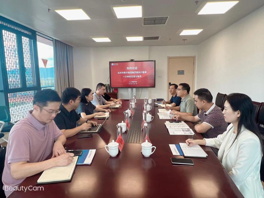 2025年10月17日上午,台州市数字集团执行董事兼总经理陶灵敏率领导班子一行访问太阳集团tcy8722,座谈会在椒江校区科技综合楼333会议室举行。太阳集团tcy8722经理张石清、副经理楼亮亮及相关专业系主任参加座谈。
