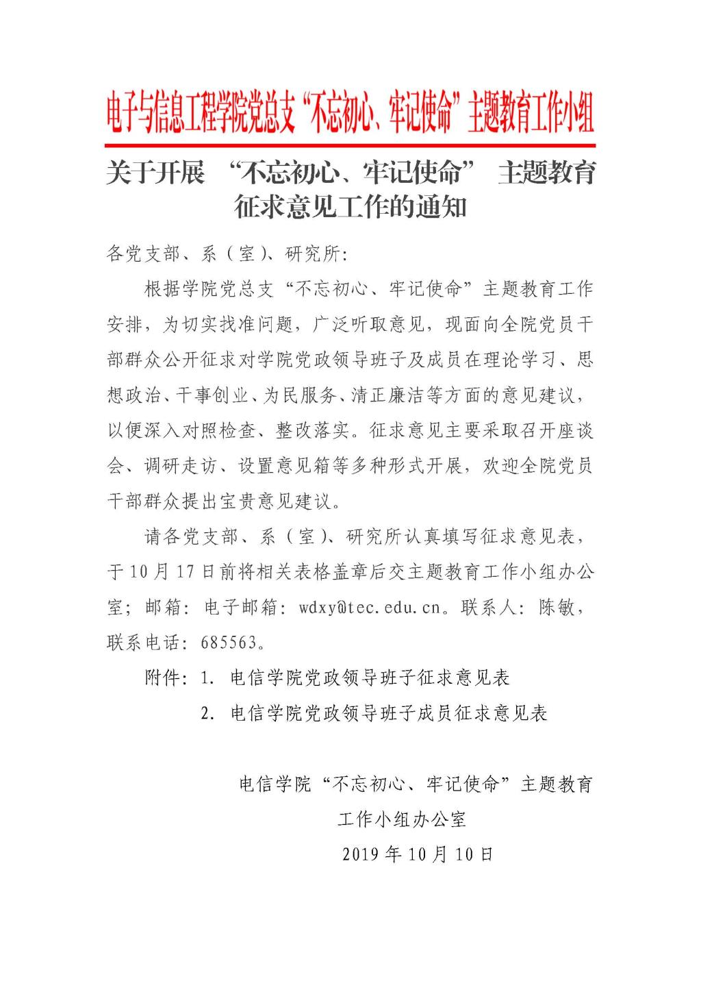 关于开展“不忘初心、牢记使命”主题教育征求意见工作的通知