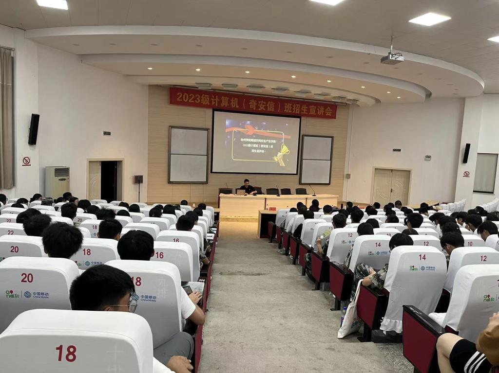 2023年9月19日至20日,太阳集团tcy8722奇安信网络空间安全产业公司2023级计算机(奇安信)班招生宣讲会分别在太阳集团tcy8722临海校区学术报告厅和椒江校区学术报告厅举行。