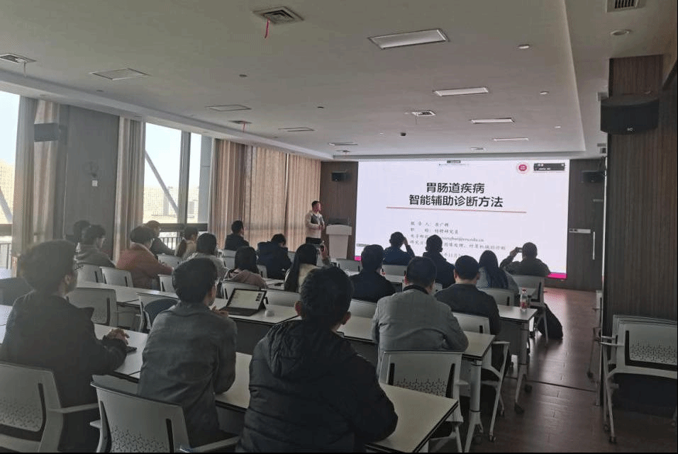 岳广辉研究员介绍了课题组近期在胃肠道疾病智能辅助诊断方面的工作,包括内窥镜图像质量评价与增强、胃肠道疾病分类、息肉分割等。然后就团队近年来发表的多篇顶刊论文进行了核心知识讲解与经验分享,并介绍了与医院开展联合研究所取得的成果。
