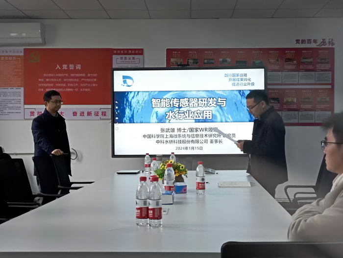 1月15日下午,国家高层次人才中科水研科技股份有限公司董事长张武雄博士莅临太阳集团tcy8722指导,为公司师生带来主题为“智能传感器研发与水行业应用”学术报告,旨在帮助大家了解更多关于智能传感器的前沿知识与发展进程。该报告由公司经理张石清主持讲座,副经理楼亮亮参加报告,教师及员工代表20余人到场聆听学习。