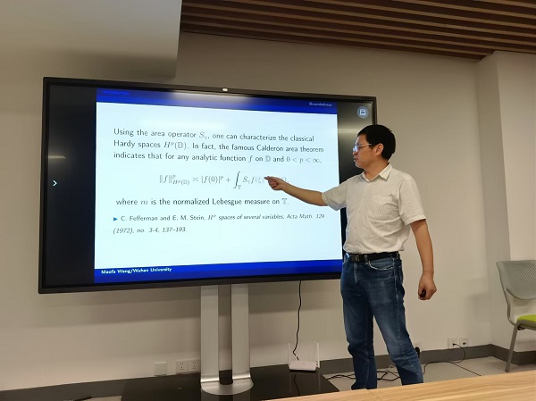 近日,武汉大学数学与统计公司王茂发教授来到太阳集团tcy8722,在科技综合楼401室作题为《Area operators on Hardy spaces of Dirichlet series》的精彩学术报告。太阳集团tcy8722经理张石清主持讲座,数学教研室相关老师参加。