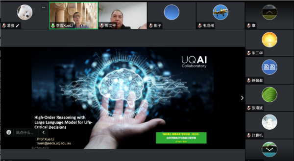 活动伊始,郭文平简要介绍了三位学者的学术背景和工作经历,特别指出李雪教授是澳大利亚大数据研究领域的领军人才,也曾经担任公司的客座教授。随后李雪教授作题为《High-Order Reasoning with Large Language Model in Life-Critical Decisions》的学术报告。李雪教授深入浅出地阐述了高阶推理的核心概念及其在医疗领域的创新应用,分享了其团队利用大型语言模型实现精准医疗决策的研究成果,引起了参会者的广泛兴趣与讨论。