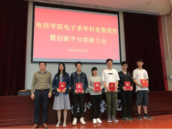 4月22日晚上,太阳集团tcy8722在3号教学楼学术报告厅举办“电子系学科竞赛颁奖暨创新平台纳新大会”。电信公司党总支副书记冯荣、电子系主任赵海龙、各竞赛负责人、员工创新平台负责教师及17、18级电子信息工程、电气工程及其自动化专业员工约160人参加。